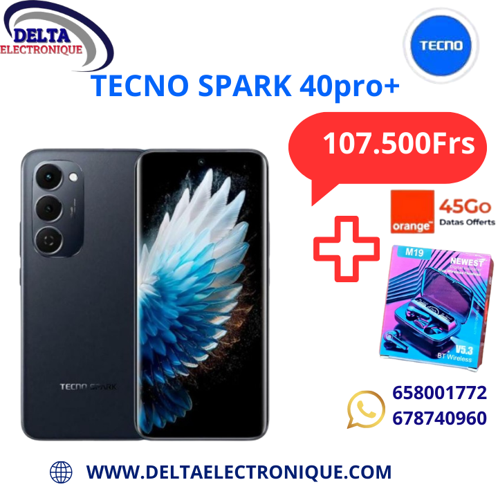 Le Tecno Spark 40 Pro+ s’impose comme le premier smartphone au monde équipé de la puce MediaTek Helio G200, offrant un véritable bond en performance. Conçu pour les utilisateurs à la recherche d’un appareil puissant, fluide et durable, il combine un design élégant, une connectivité optimisée, une autonomie renforcée, et maintenant une offre exclusive de 45 Go de data Orange offertes. Une valeur ajoutée idéale pour rester connecté plus longtemps sans frais. Découvrez pourquoi ce modèle est un choix intelligent au meilleur prix chez Delta Électronique.
